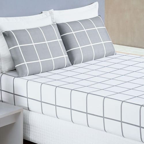 Jogo De Lençol King Austin Micropercal 200 Fios - 3 Peças Cor Xadrez Cinza - Única