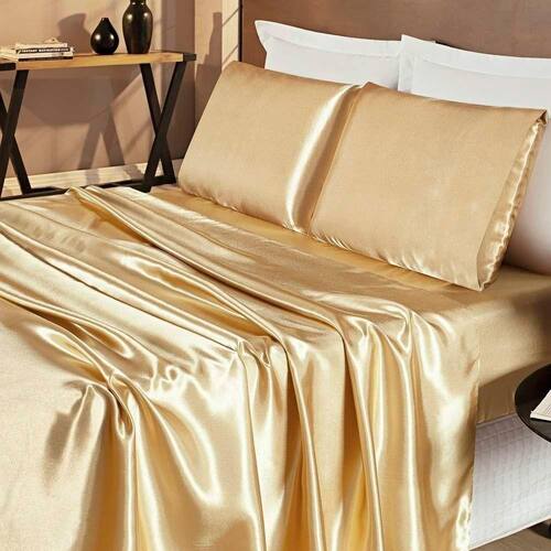 Jogo De Lençol King Cetim Shine 4 Peças Dourado