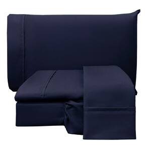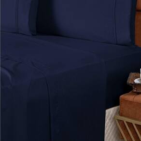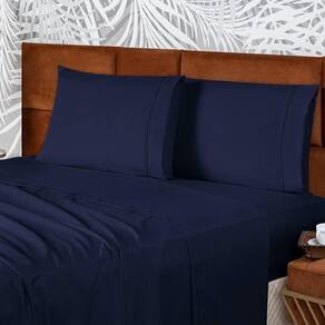 Jogo De Lençol King Confort Micropercal 300 Fios Toque De Algodão 4 Peças - Marinho