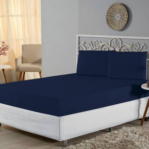 Jogo de Lençol King Malha 100% Algodão 3 Peças - Marinho - Única