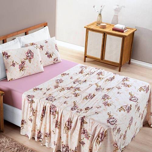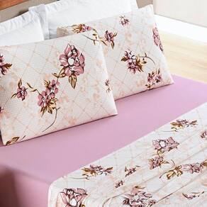 Jogo de Lençol King Quality Malha 100% Algodão Estampado 4 Peças - Rose - Única