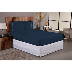 Jogo De Lençol King Size 400 Fios 3 Peças Fronha Ponto Palito Aveludado Marinho - Azul Marinho