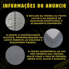 1 lençol com elástico na volta toda para colchões de até 1,93m x 2,03m x 30 cm altura