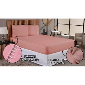 Jogo De Lençol King Size 400 Fios 3 Peças Fronha Ponto Palito Aveludado Rose - Rosê