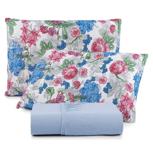 Jogo De Lençol Luar Casal 3 Peças Malha 100% Algodão Estampado Azul Floral