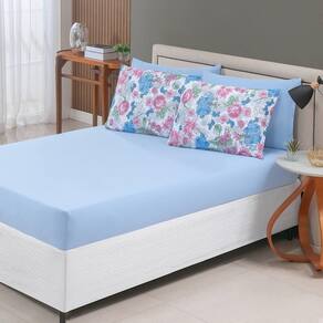 Jogo De Lençol Luar Casal 3 Peças Malha 100% Algodão Estampado - Azul Floral