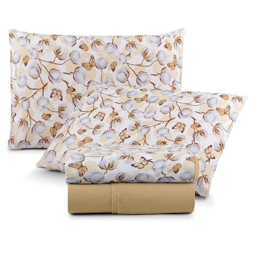 Jogo De Lençol Luar Queen 4 Peças Malha 100% Algodão Estampado Mostarda Cotton
