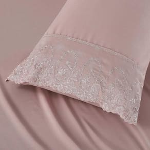 O Jogo de Lençol Lummi combina requinte e conforto em cada detalhe. Produzido em micropercal 300 fios com toque algodão, oferece uma textura suave e agradável, garantindo noites de sono mais relaxantes. O bordado inglês delicado nas fronhas e na vira do lençol adiciona um toque de elegância clássica, valorizando a composição da cama com sofisticação.