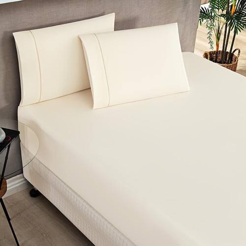 Jogo De Lençol Milano Casal King 3 Peças Percal 180 Fios Ponto Palito Classic - Palha