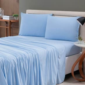 Jogo De Lençol Minimal King 4 Peças Malha 100% Algodão Liso - Azul