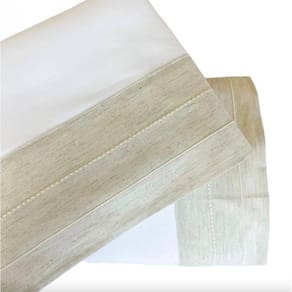 Lençol superior, lençol inferior e fronha em percal 180 fios - 100% algodão, com toque suave e macio. Sendo o lençol de baixo com elástico na volta toda, proporcionando facilidade na colocação no colchão.