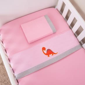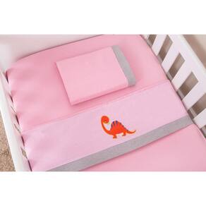 Jogo De Lençol Para Berço Americano 3 Peças Dinossauro Rosa