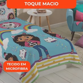 Características: -Coleção: Lepper Kids -Composição: 100% Poliéster -Estampa: A Casa Mágica da Gabby -Fabricante: Lepper -Gramatura: 65g/m² -Amassa Menos -Não Precisa Passar -Seca + Rápido -Serve em cama box