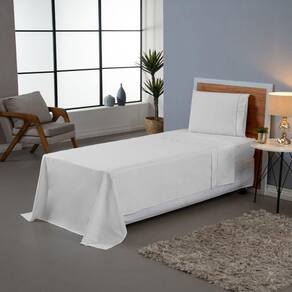 Jogo De Lençol Ponto Palito Completo 3 Peças Solteiro 80% Algodão / 20% Poliéster Percal 140 Fios Cor:branco