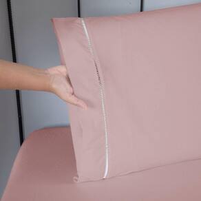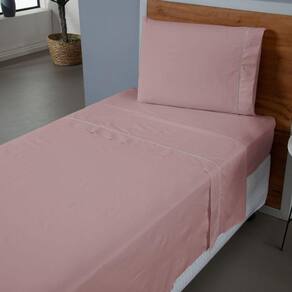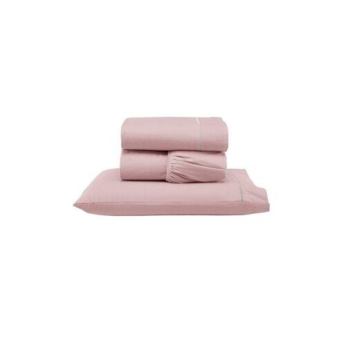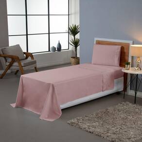 Jogo De Lençol Ponto Palito Completo 3 Peças Solteiro 80% Algodão - 20% Poliéster Percal 140 Fios Cor:rosê