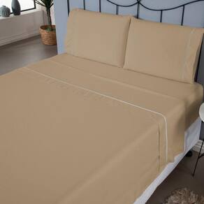 Quantidade de Peças e Medidas Aproximadas:1 Lençol sem elástico: 2,50 m (comprimento) x 2,05 m (largura)1 Lençol com elástico: 1,88 m (comprimento) x 1,38 m (largura) x 30 cm (altura)2 Fronhas: 70 cm (comprimento) x 50 cm (largura)Material e Composição:Tecido: 80% algodão / 20% poliéster - percal 140 fiosInformações Específicas:Detalhe Ponto Palito: Presente nas fronhas, com ótimo tamanho de transpasse para evitar que o travesseiro Completo: Inclui um lençol de cima (virol) que pode ser para ástico: Presente em toda a volta do lençol de baixo, garantindo melhor ção: Ideal para compor a decoração do quarto, facilmente combinável com outras peçção!A tonalidade da cor pode variar de acordo com cada tela de dispositivo.Informações Gerais:O material visual é meramente ilustrativo e pode haver alterações na tonalidade da cor da imagem do produto devido a diferenças de telas de visualizaçã atento(a) à descrição do produto, pois nem todas as peças mostradas nas imagens estão incluídas.