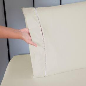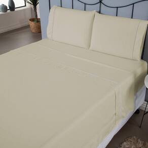 Contém na Embalagem: 01 Lençol sem elástico: 2,85m comp. x 2,80m larg. 01 Lençol com elástico: 2,03m comp. x 1,93m larg. x 40cm alt. 02 Fronhas: 70cm comp. x 50cm larg.