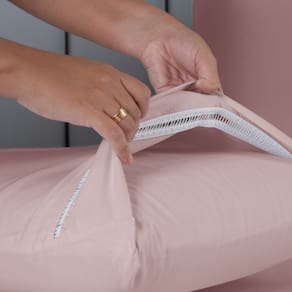 - Detalhe ponto palito nas fronhas e ótimo tamanho de transpasse, evitando que fique saindo do travesseiro;