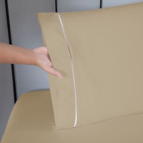 - Detalhe ponto palito nas fronhas e ótimo tamanho de transpasse, evitando que fique saindo do travesseiro;