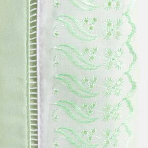 O acabamento em Ponto Palito com Babadinho Bordado Inglês confere um charme especial ao conjunto, adicionando detalhes delicados e elegantes. O Ponto Palito é uma técnica de bordado que cria desenhos em relevo, enquanto o Bordado Inglês é um detalhe rendado que embeleza ainda mais a peça.