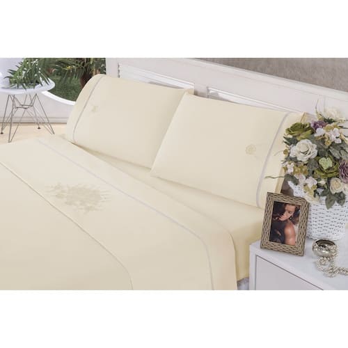 Ponto Palito Bordado Crivo 100% algodão Contém: 04 peças 01 Lençol de Cima - 2,60 x 2,30 01 Lençol Baixo com Elástico - 1,98 x 1,58 x 30cm de altura 02 Fronhas 70cm x 50cm