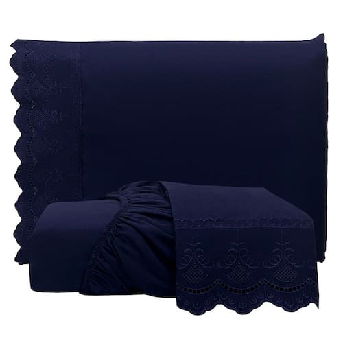 O Jogo de Lençol traz a elegância do bordado inglês, é confeccionado em tecido micropercal 300 Fios 100% Poliéster, um tecido de grande qualidade e alta durabilidade, possui toque super macio e suave, trazendo conforto, praticidade e qualidade para a sua cama.