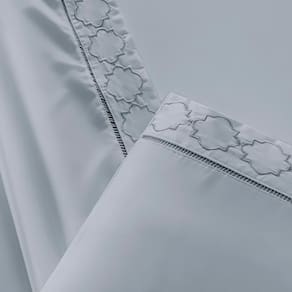 O Jogo de Cama para cama Queen com 04 peças confeccionado em Tecido Micropercal 300 Fios com detalhe Bordado com alto padrão de qualidade, proporciona conforto e sofisticação.