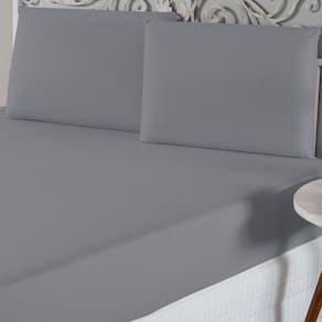 Jogo De Lençol Queen Malha 100% Algodão 3 Peças - Cinza