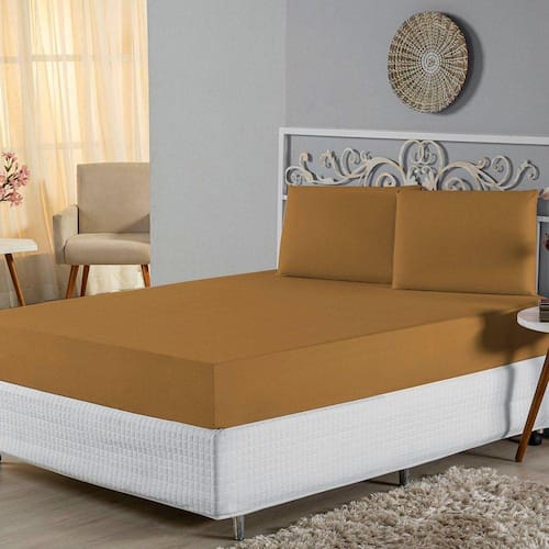 Jogo de Lençol Queen Malha 100% Algodão 3 Peças - Cobre - Única