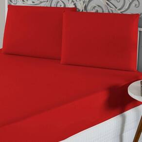Jogo De Lençol Queen Malha 100% Algodão 3 Peças Cor Vermelho - Única