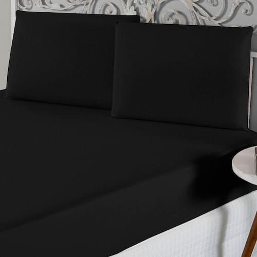 Jogo De Lençol Queen Malha 100% Algodão 3 Peças - Preto