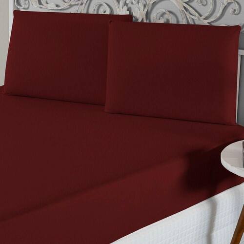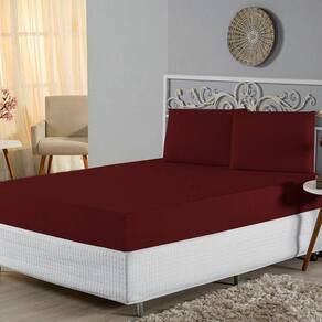 Jogo De Lençol Queen Malha 100% Algodão 3 Peças - Vinho