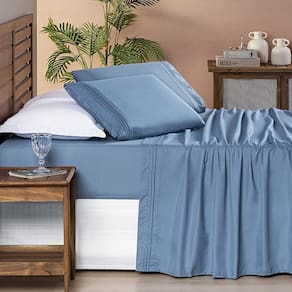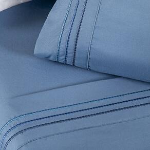 Jogo de Lençol Queen Yara bordado 4 peças Azul