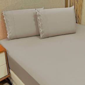 O destaque fica por conta do delicado bordado inglês nas fronhas, que adiciona charme e elegância ao conjunto, tornando-o perfeito para compor uma cama sofisticada e acolhedora. Ideal para quem aprecia o equilíbrio entre requinte e bem-estar no ambiente do quarto.
