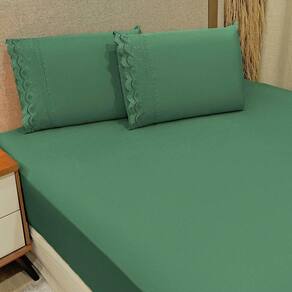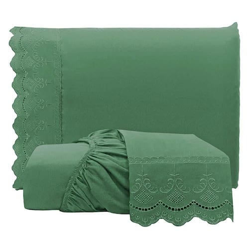 Jogo De Lençol Realce King 3 Peças Percal 300 Fios Bordado Inglês Macio - Verde - 100% Poliéster