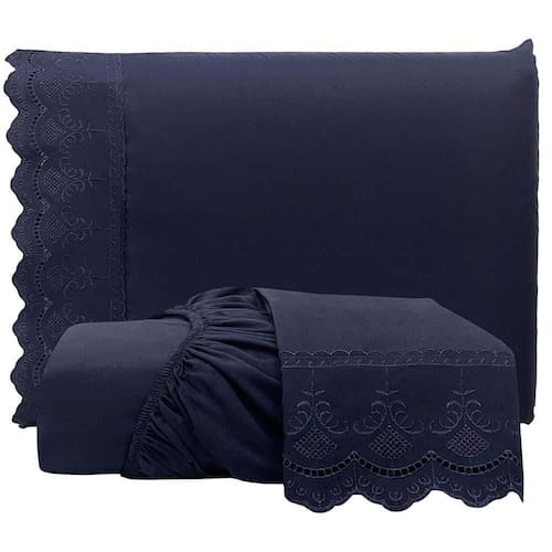 O destaque fica por conta do delicado bordado inglês nas fronhas, que adiciona charme e elegância ao conjunto, tornando-o perfeito para compor uma cama sofisticada e acolhedora. Ideal para quem aprecia o equilíbrio entre requinte e bem-estar no ambiente do quarto.