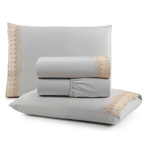 Jogo De Lençol Rubi Casal 4 Pçs 100% Algodão 200 Fios Ponto Palito Bordado - Cinza