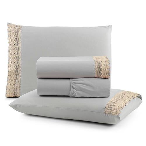 Jogo De Lençol Rubi Casal 4 Pçs 100% Algodão 200 Fios Ponto Palito Bordado - Cinza - Única