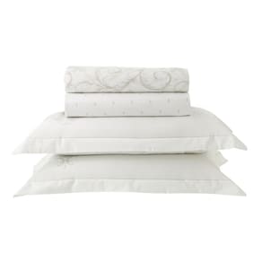 O Jogo de Cama Kacyumara Vida Bela Albi 200 Fios, apresenta uma estampa elegante e delicada de arabescos, em tons neutros de off white e bege, trazem uma harmonia que amplia em muito a decoração.