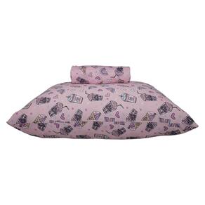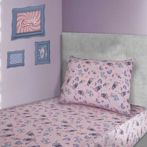 Jogo de Lençol Solteiro KazzaVip Malha Misto 70% Algodão e 30% Poliéster Estampado com Elástico 2 Peças Milk Skake Rosa