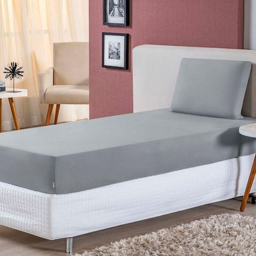 Jogo De Lençol Solteiro Malha 100% Algodão 2 Peças - Cinza