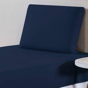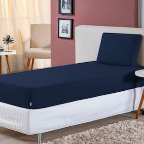Jogo De Lençol Solteiro Malha 100% Algodão 2 Peças Cor Azul Marinho