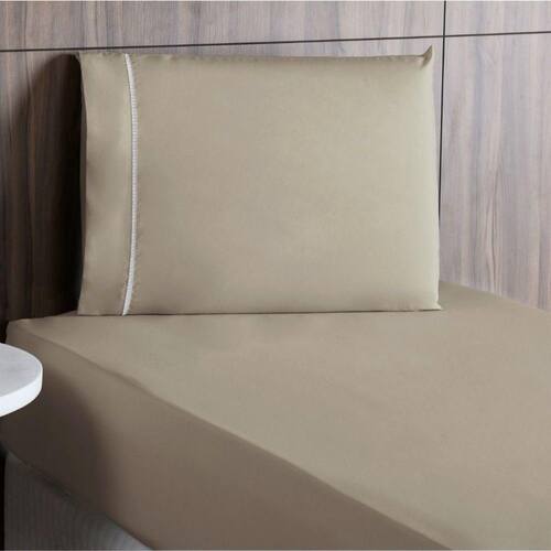 Jogo De Lençol Solteiro Percal 200 Fios 2 Peças - Cáqui