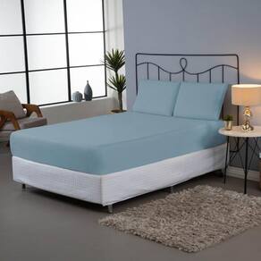 Jogo De Lençol Usual Liso Casal Padrão 3 Peças Percal 140 Fios Macio - Azul - Única