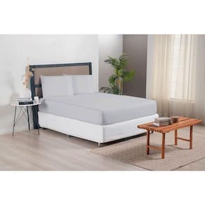 01 Lençol com elástico: 1,98m comp. x 1,58m larg. x 35cm alt.