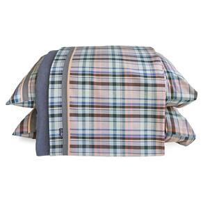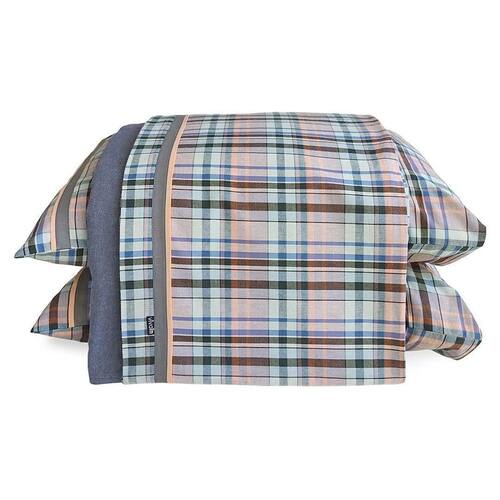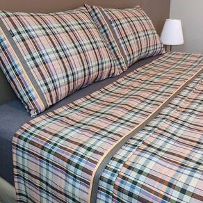 Jogo de lençol QUEEN com 4 peças: 02 fronhas, 01 lençol com elástico, 01 lençol de cima - Medidas do lençol de elástico: 1,60 x 2,00 x 0,40 m - Medidas do lençol de cima: 2,50 x 2,80 m - Medidas da fronha: 50 x 70 cm - Cor do lençol de cima: xadrez salmão/verde/azul/preto - Cor do lençol de elástico: cinza mescla - Tecido: Flanela Cataguase 100% algodão - Enchimento para os travesseiros não incluso - As cores podem sofrer alterações conforme a configuração de sua tela