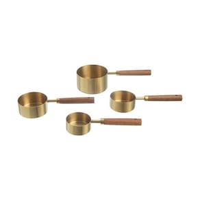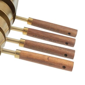 Para ter a melhor experiência nos seus preparos, utilize os Medidores Medina! Fáceis de armazenar, podem ser empilhados. São feitos de aço inox e cabos em madeira acácia. O acabamento polido em dourado, adiciona um toque de charme à cozinha.