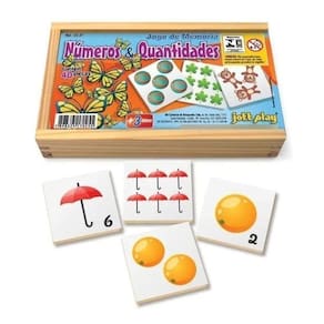 Descrição cada jogo: Uso: a criança espalhará o jogo sobre a mesa com as figuras viradas para cima. Numa etapa inicial, procurará os pares classificando-os. Em etapa avançada, poderá voltar as figuras viradas para baixo que são pinçadas uma a uma formando os pares. Ótimo estímulo e entretenimento para trabalho em grupo ou individual. Desenvolve: atenção, concentração, memorização imediata, percepção dos detalhes, organização espacial. Idade: a partir dos 4 anos. Composição: jogos de memória educativos, selecionados dentre os temas mais importantes na educação atual impressos em transfer brilhantes em fibro madeira. Acondicionados em caixa de madeira medindo 3,5x12x22cm. Contendo 40 peças medindo 5 x 5 x 0,4 cm.