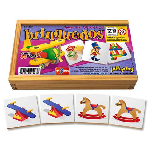 Brinquedos que ensinam, educam e divertem Jogo de memória brinquedos 40 peças em madeira Uso: a criança espalhará o jogo sobre a mesa com as figuras viradas para cima. Numa etapa inicial, procurará os pares classificando-os. Em etapa avançada, poderá voltar as figuras viradas para baixo que são pinçadas uma a uma formando os pares. Ótimo estímulo e entretenimento para trabalho em grupo ou individual. Desenvolve: atenção, concentração, memorização imediata, percepção dos detalhes, organização espacial. Composição: jogos de memória educativos, selecionados dentre os temas mais importantes na educação atual impressos em transfer brilhantes em fibro madeira. Acondicionados em caixa de madeira medindo 3,5x12x22cm. INMETRO CE-BRI/003N 3107-07 NM300/2002 Contendo 40 peças em madeira. Certificado inmetro.