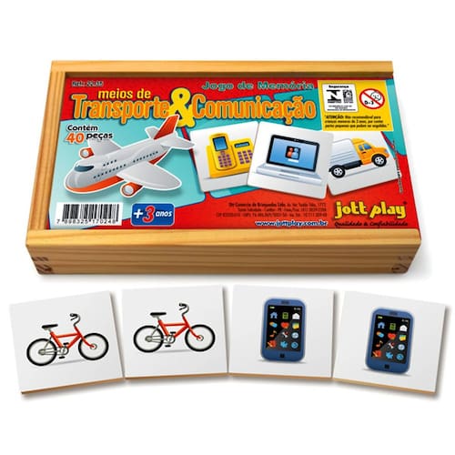 O Jogo de Memória Transportes e Comunicação é um brinquedo educativo que proporciona diversão enquanto ensina e educa as crianças. Composto por 40 peças em madeira, o jogo possui transfer brilhantes em fibro madeira, selecionados dentre os temas mais importantes na educação atual.